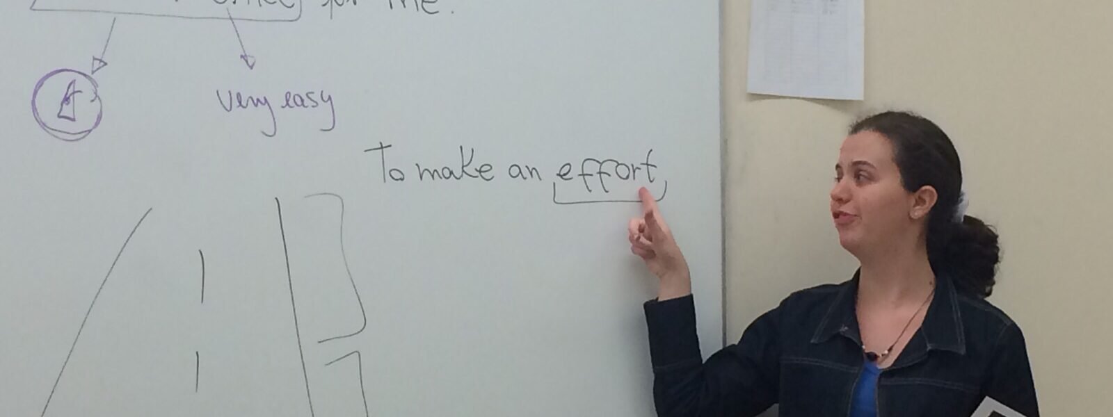What I like most about teaching English is the interaction I have with my students. It’s the conversations that we have. We talk about so many things! I GET TO know their points of view about different ISSUES, different things. I learn a lot from them, and at the same time, I have a feeling of doing something important. I have a feeling that I can help them ACHIEVE THEIR GOALS with what I can offer them.